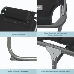 Multifunktionaler Outdoor-Liegestuhl: Mit seiner Portabilität ist der faltbare Liegestuhl für verschiedene Anlässe geeignet, wie Strand, Pool, Camping, Picknick, etc. Ein langlebiger Liegestuhl sorgt dafür, dass er immer ein treuer Begleiter auf Ihren Reisen ist.