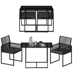 Ob auf der Terrasse, dem Balkon oder im Garten auf der Terrasse– das 'Kynaris' Set passt sich jeder Umgebung an und überzeugt mit stilvollem Design und funktionaler Eleganz. Ideal für kleine sowie größere Außenbereiche.