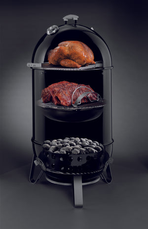 Der Weber Smokey Mountain Cooker (Ø 47cm) steht für hochwertige Qualität und ist sehr leistungsstark. Er ist der Kompakteste der Doppeldecker-Familie von Weber und verfügt über zwei Hauptgrillflächen mit Ø 47cm. Er wurde mit 3 getrennt regulierbaren Zuluftöffnungen im Kessel für optimale Hitzeregulierung ausgestattet. Der Grill verfügt über über einen stabilen Duroplastgriff am Deckel und wird mit zwei verchromten Grillrosten geliefert. Das im Deckel integrierte Thermometer lässt Sie jederzeit wissen, welche Temperaturen unter dem Deckel herrschen. Eine extra große Öffnung ermöglicht bequemes Nachlagen von Briketts und Räucherchips. Für einen sicheren Stand sorgen 3 stabile Standfüße und vor Witterungseinflüsse schützt eine Abdeckhaube die im Lieferumfang enthalten ist. Das Grillgut kann über mehrere Stunden bei gleichmäßiger Temperatur gegart und geräuchert werden, da eine porzellanemaillierte Wasser- und Fettauffangschale das Grillgut vor dem Austrocknen schützt. Ein massiver Kohlerost ermöglicht eine gleichmäßige Zuluftzirkulation um die Briketts. Besonderes Outdoor-Vergnügen bieten wir allen Fans des rauchigen Geschmacks mit diesem Weber Smokey Mountain Cooker.