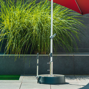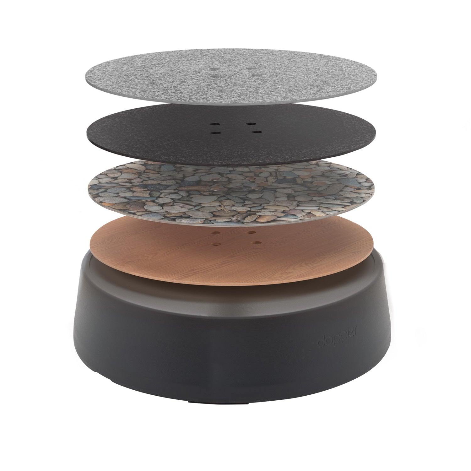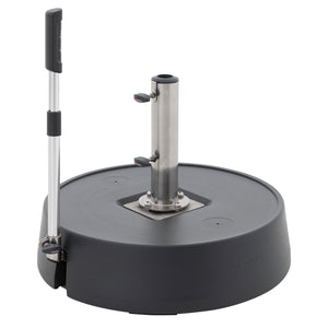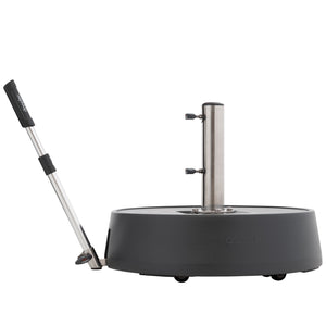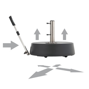 Die neueste Innovation aus dem Hause DOPPLER ist der "Easy Move Switch". Durch die teleskopierbare und bei Bedarf auch abnehmbare Zugstange kann der Sockel bequem auf der Terasse bewegt werden. Doppler bietet als erster Hersteller einen vom Kunden individualisierbaren Schirmsockel an. Aus insgesamt 4 Dekorplatten (ca. 7,65 kg) können Sie sich optional, zu Ihrem Stil passend, die richtige Sockeloptik auswählen.