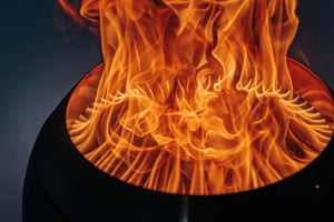 MOON 45 - Der schwarze Mond der Feuerkunst verzaubert mit seiner Holzvergaser-Brennertechnologie, die ein atemberaubend raucharmes Feuer entfacht und ein begeisterndes Flammenmeer entstehen lässt.